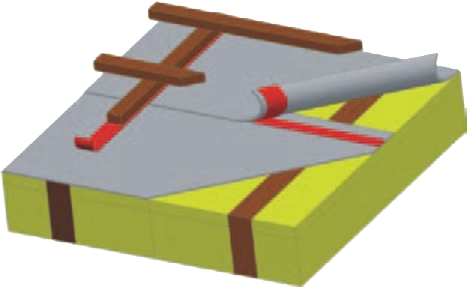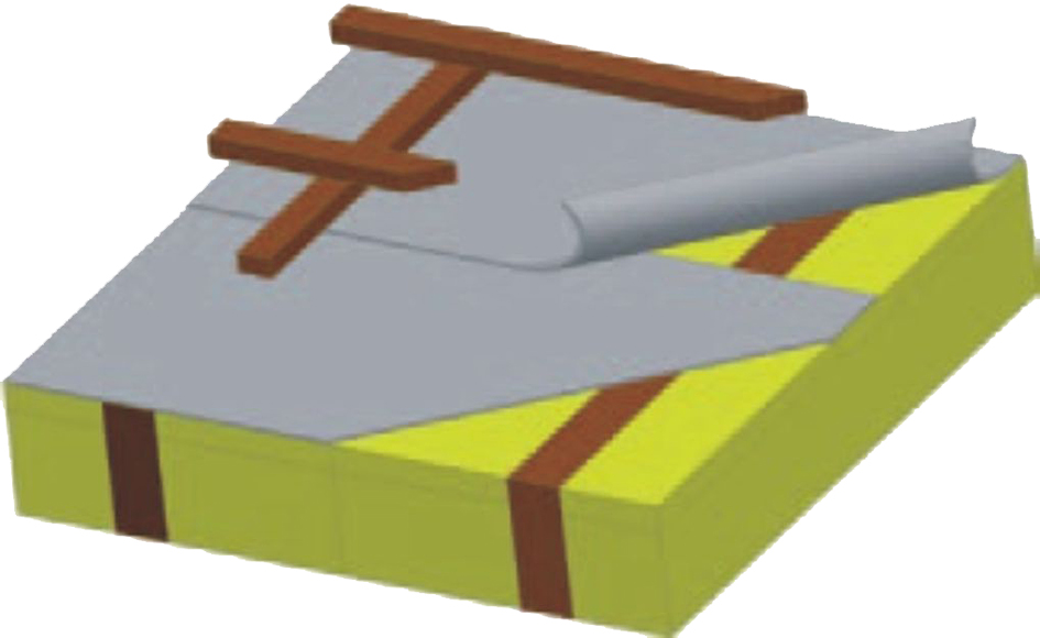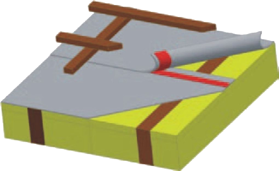 Pojistná hydroizolace volně přeložená přes sebe na tvarově stabilní tepelné izolaci nebo bednění