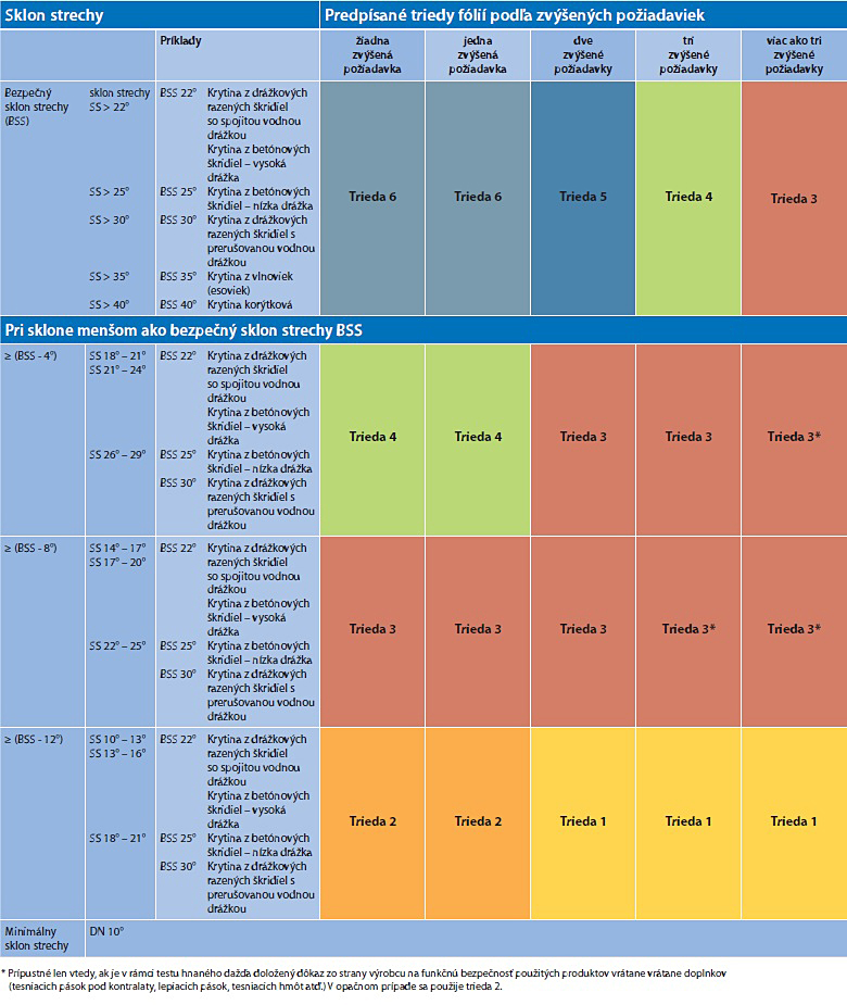 – definování minimálních kvalitativních požadavků na pojistné hydroizolace a jejich zařazení do tříd A, B (při nezateplených podkrovích) a do tříd A, B, případně C (při zateplených podkrovích);