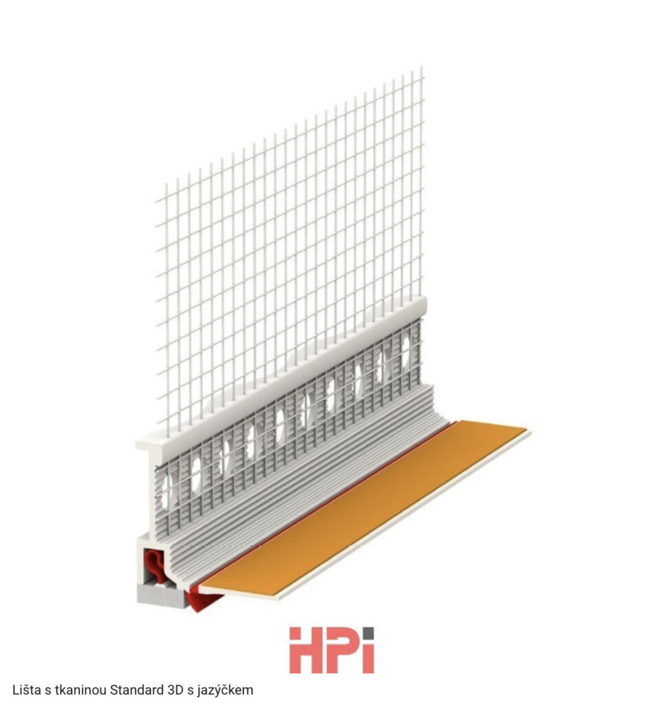 Lišta s tkaninou Standard 3D s jazýčkem je okenní napojovací profil se samolepicí PE těsnicí páskou a flexibilní ochrannou lamelou. Zajišťuje dlouhodobě funkční a bezúdržbové spojení mezi okenním nebo dveřním rámem a zateplovacím systémem. Díky trojrozměrné absorpci pohybu minimalizuje vznik trhlin vlivem pohybových napětí a netěsností, čímž přispívá ke stabilitě fasády a celkové životnosti systému. Lišta je učena pro tloušťku izolace až do 300 mm.