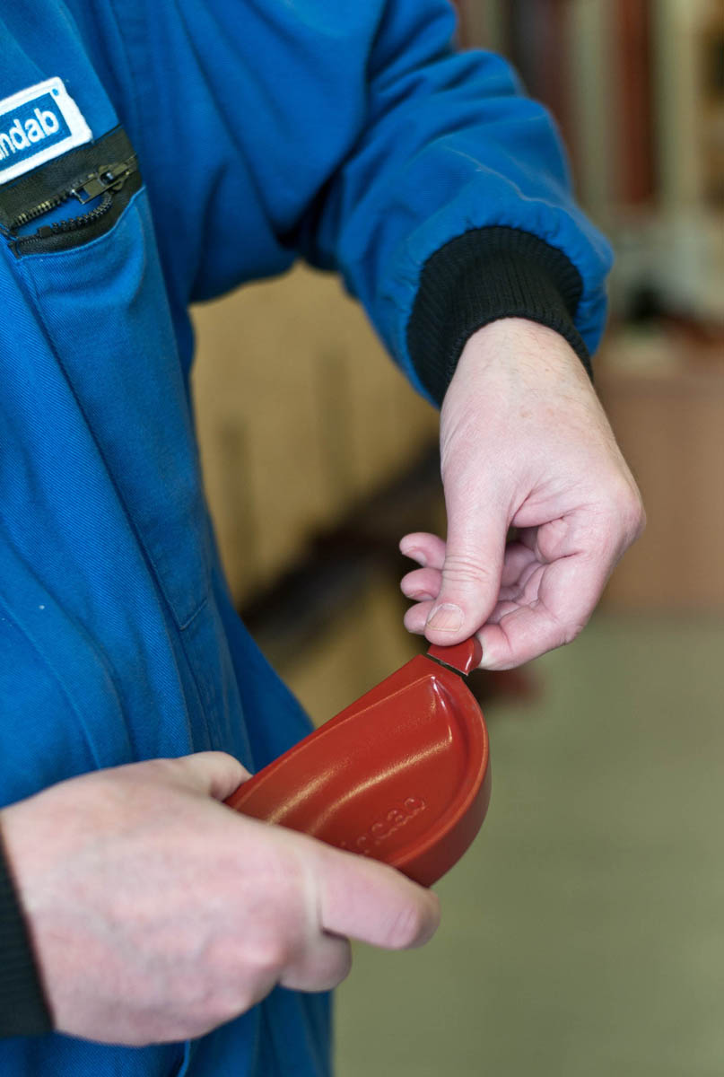 2. Instalace žlabového čela Lindab Rainline probíhala díky zcela jinému systému uchycení naprosto jinak. Pevnost a těsnot čela RG (Lindab), zajišťuje čtyřnásobná lamela z EPDM materiálu, toto čelo se aplikuje pouhým naražením na konec žlabu. Čelo je univerzální, tzn. je použitelné pro levou i pravou stranu a nepotřebné ouško čela snadno odlomíte díky částečné perforaci. Pro opětovné demontování čela je zapotřebí vyvinout velké úsilí a je lépe použít gumovou paličku neboť lamela drží čelo opravdu výborně a to i na neoriginální, ne zcela kolmo řezané hraně žlabu! Čelo Lindab RG lez opakovaně demontovat a opět osadit, bez ztráty pevnosti spoje. Osazení toho čela mi zabralo 5–10 vteřin!