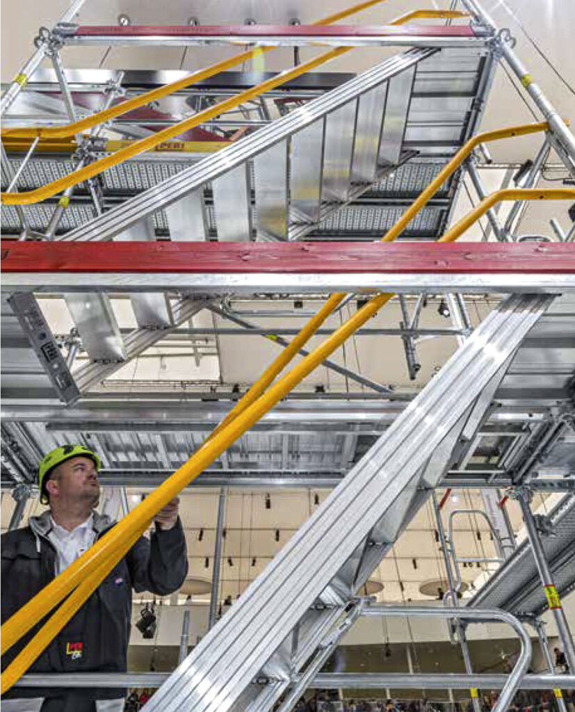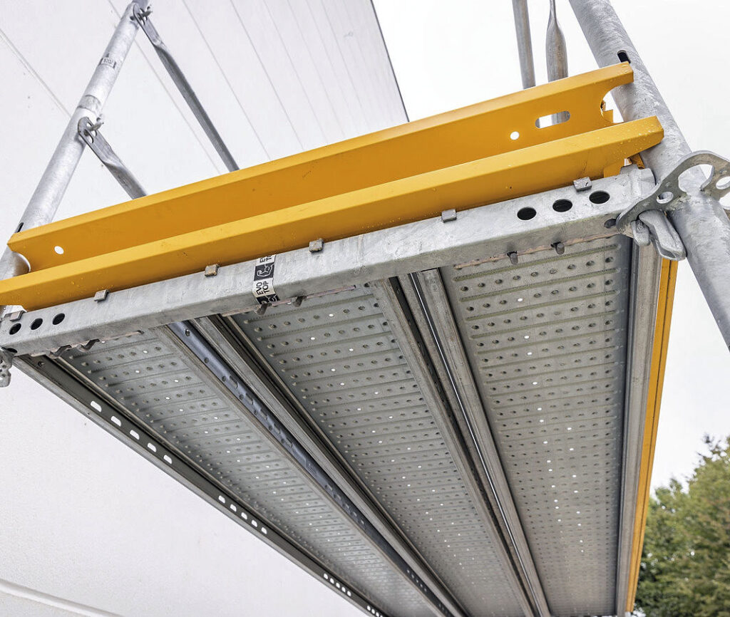 Samotný pohyb po lešení je navíc bezpečný díky integrované pojistce proti nazdvihnutí podlahy lešení. Ta zapadne pod horizontálu a zajistí tím podlahu ve správné poloze. Podlahy PERI UP jsou tak bez nutnosti použití dalších dílů zajištěny a bezpečné pro běžný provoz na lešení. V případě potřeby mohou být později podlahy demontovány také po jednotlivých polích, např. pro vynášení materiálu.