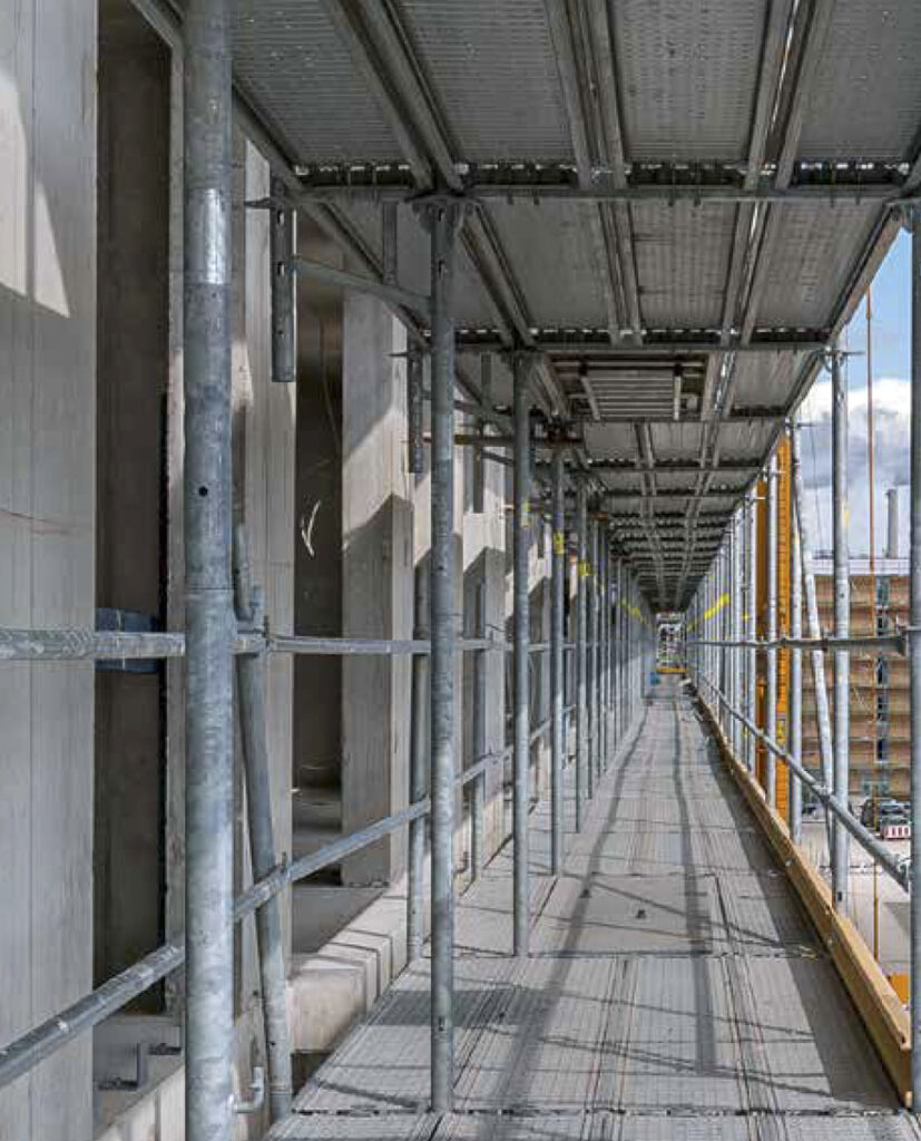 Rezidenční čtvrť Hagibor nabízí moderní symbiózu kvalitního bydlení, kancelářských prostor, obchodů a služeb, vše zasazené do malebného lesoparku. Nově budované rezidenční domy Gamma a Delta navazují na první dva bytové domy projektu. Stavba má celkem tři podzemní a 11 nadzemních pater. Pro metodu výstavby monolitických stěn a stropů byly nasazeny osvědčené systémy bednění PERI. Stěny byly bedněny rámovým bedněním TRIO, na stropy bylo použito nosníkové stropní bednění MULTIFLEX. Podepření volných částí betonových desek bylo řešeno nasazením hliníkových stropních stojek MULTIPROP. V průběhu stavby bylo postupně osazováno také fasádní lešení PERI UP Easy. Nejdůležitější částí projektu, pro kterou byl nutný přesný návrh technického oddělení PERI, byly podpěrné konstrukce nepravidelně rozmístěných balkónů. V této části bylo rozhodnuto o nasazení modulového lešení PERI UP Flex.