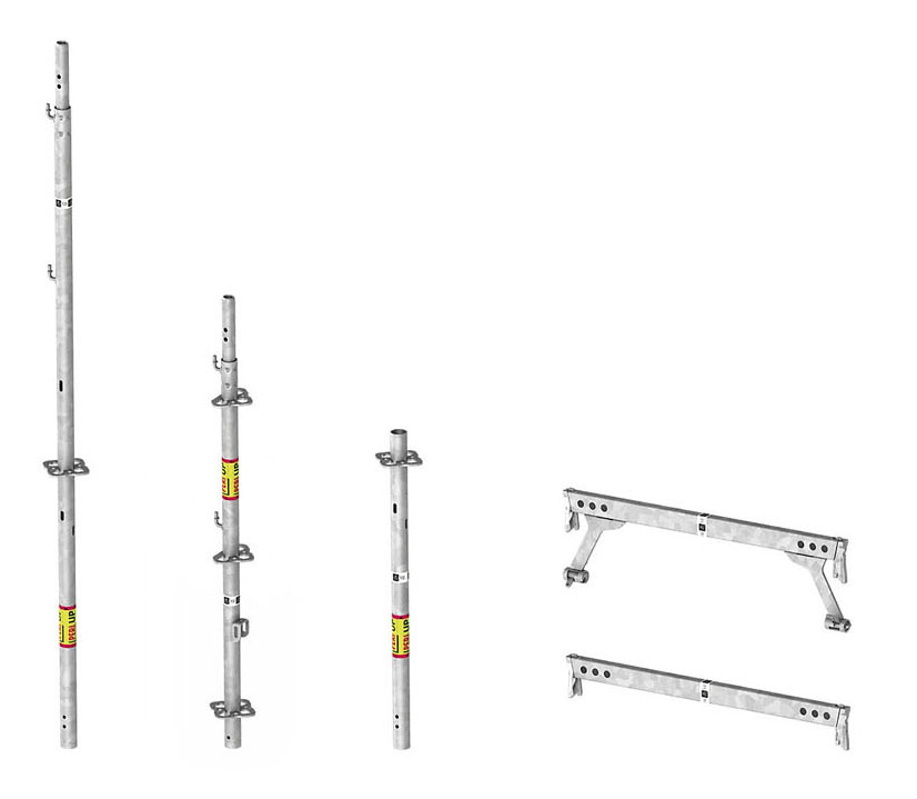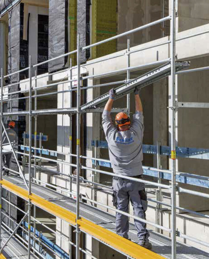- Rychlost montáže: Lešení kombinuje výhody modulárního systému s rychlostí fasádního lešení, to vše za použití minima nářadí a téměř bez spojovacích dílů.
