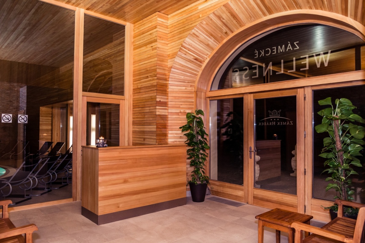 Ve wellness na zámku Hrádek vás přivítá vzdušná prosklená bazénová hala, plná světla s krásným výhledem na rybník. Nový bazén nabízí jedinečné prostředí pro relaxaci, součástí wellness je i saunový svět se čtyřmi druhy saun. V interiéru wellness centra se uplatnily špičkové materiály stavební chemie Ceresit.