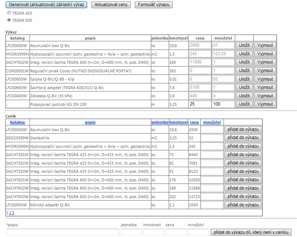Stejně jako celý nástroj, i jeho nová funkcionalita je maximálně uživatelsky přívětivá. V prvním kroku je uživatel vyzván ke spuštění procedury automatického generování té části výkazu materiálu, která je známá z provedeného návrhu objektu. V této fázi se automaticky stanovuje počet boxů a počet jejich spojek, potřebný rozměr obalového materiálu (geotextiliie pro případ vsakovacích objektů, případně hydroizolační souvrství pro případ objektů retenčních) a případné sestavy integrovaných šachet umožňující revizi a čištění systému. V druhém kroku je uživateli umožněno doplnit k objektu další systémové prvky, které program nemohl stanovit automatickým návrhem – typicky např. nátoková a odtoková hrdla požadovaných průměrů a počtů. Poslední návrhový krok spočívá v možnosti doplnit do dílčího (postupně plněného) výkazu materiálu položky, které se nepovažují za přímou součást navrhovaného systému – např. metráže různého propojovacího potrubí. Výsledek může uživatel buď přímo vytisknout, nebo exportovat do programu MS Word, resp. MS Excel.