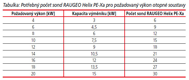 Tepelná vodivost dosahuje až 700 W. Tepelná odolnost materiálu do +95 °C umožňuje kombinaci se solárním zařízením. Sondy RAUGEO Helix se využívají v kombinaci s tepelným čerpadlem, optimálně pro podlahové vytápění. Sonda potřebuje alespoň 1,5 m zeminy na každou stranu, tzn. pro instalaci systému o patnácti sondách, který má výkon 7,5 kW je třeba prostor 9×15 m (tři řady sond po pěti).