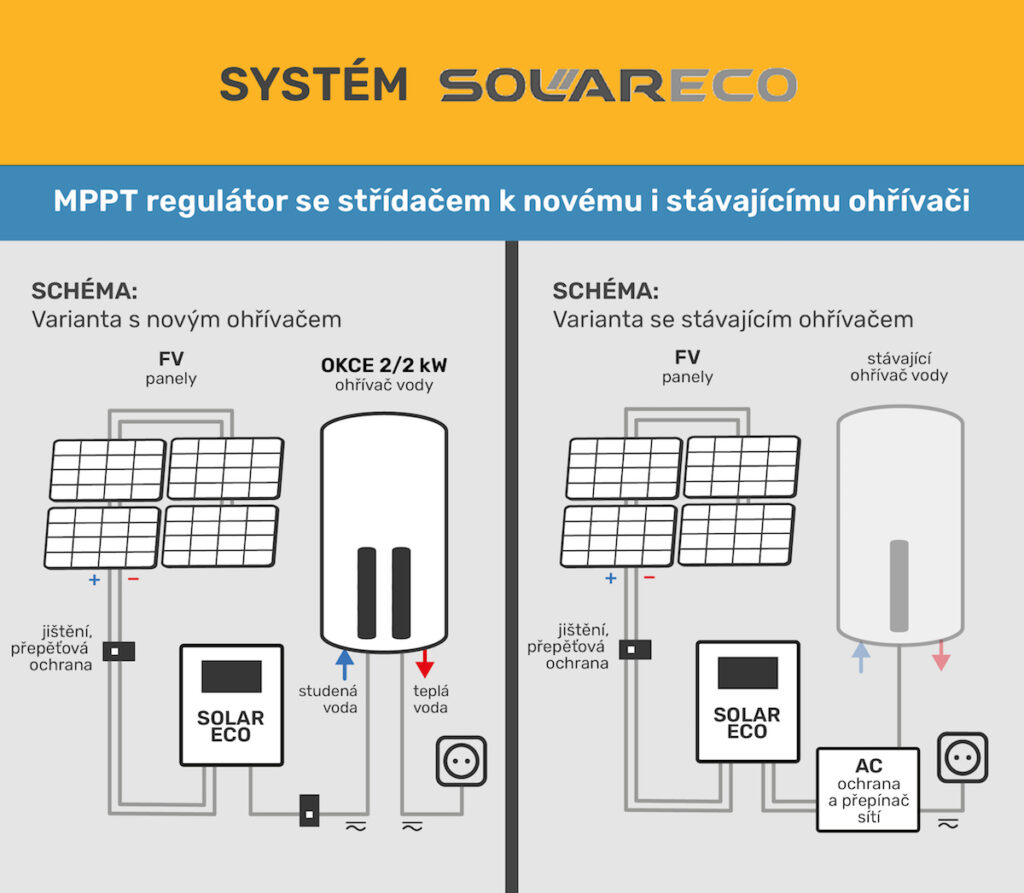 Schémata jednotlivých variant řešení fotovoltaického ohřevu vody od DZD Solar