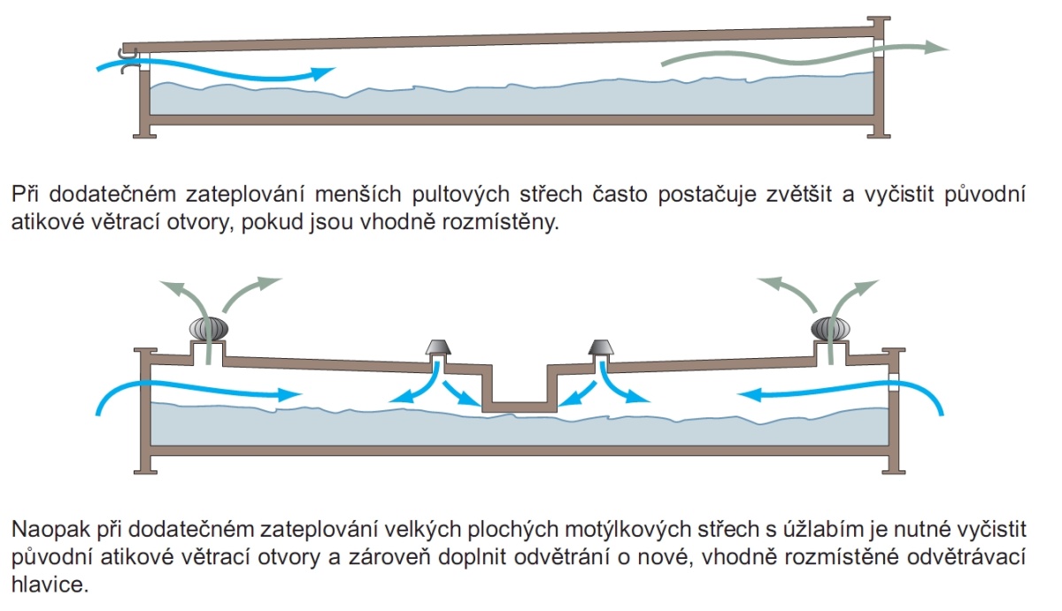 Správně fungující dvouplášťová střecha je závislá především na velikosti a vhodném rozmístění odvětrávacích otvorů, které zajišťují přívod vzduchu do vzduchové mezery a posléze jeho odvod ven.