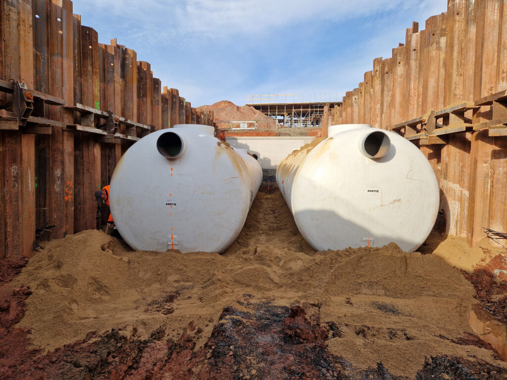 Z technického hlediska zadržet a přečistit požadovaný objem vody v jedné nádrži nebylo realizovatelné. Každou ORL jímku musel montážní tým na místo transportovat jako nadrozměrný náklad a přizpůsobit tomu i manipulaci a osazení do terénu.