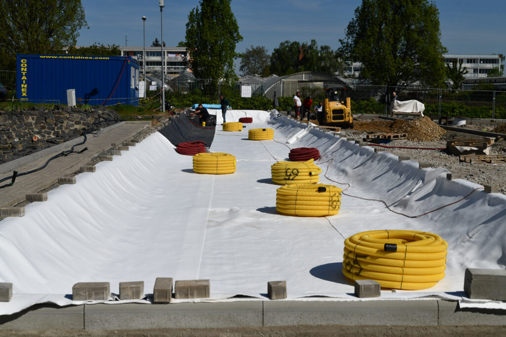 Všechny čtyři experimentální plochy parkovacích ploch jsou od svého okolí odděleny nepropustnou vanou z EPDM gumové fólie za účelem přesného stanovení vodní bilance jednotlivých ploch.