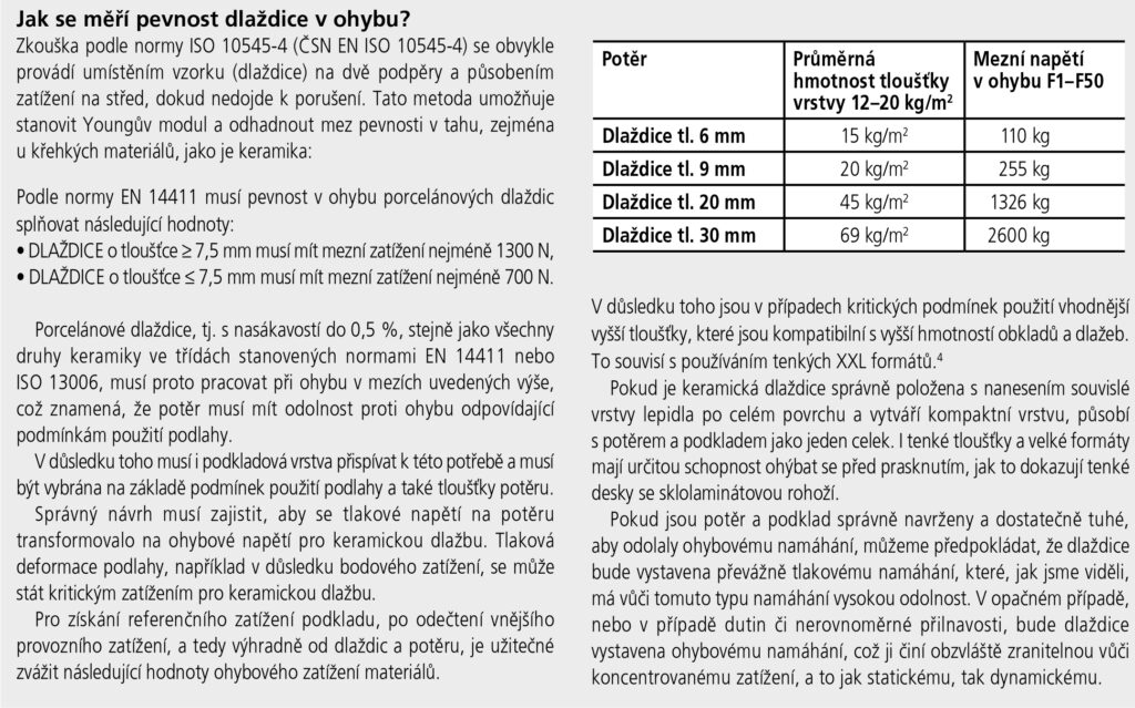 Pevnost v ohybu keramických obkladových prvků je velmi důležité kritérium při návrhu a realizaci podlah.