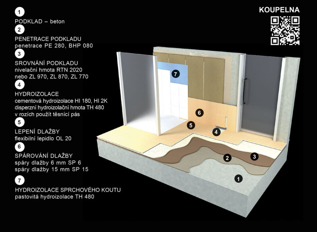 V portfoliu výrobce nechybějí ani výrobky pro přípravu vodotěsného podkladu pod obklady a dlažby ve vnitřním prostředí (koupelny, sprchy, kuchyně apod.). Vysoce kvalitní hydroizolaci zajistí například jednosložková, elastická hydroizolační hmota BRALEP TH 480, která odolává i tlakové vodě do tlaku 0,2 MPa, což odpovídá tlaku 20metrového sloupce vody. Zabraňuje difuzi vodních par, umožňuje překrytí neaktivních trhlin podkladu.
