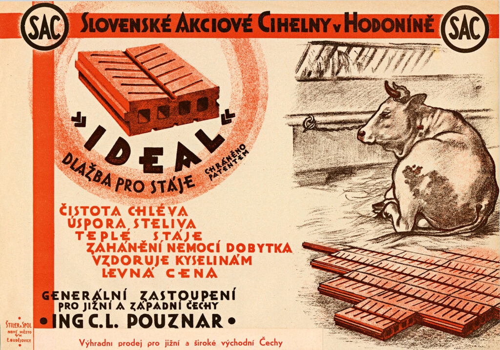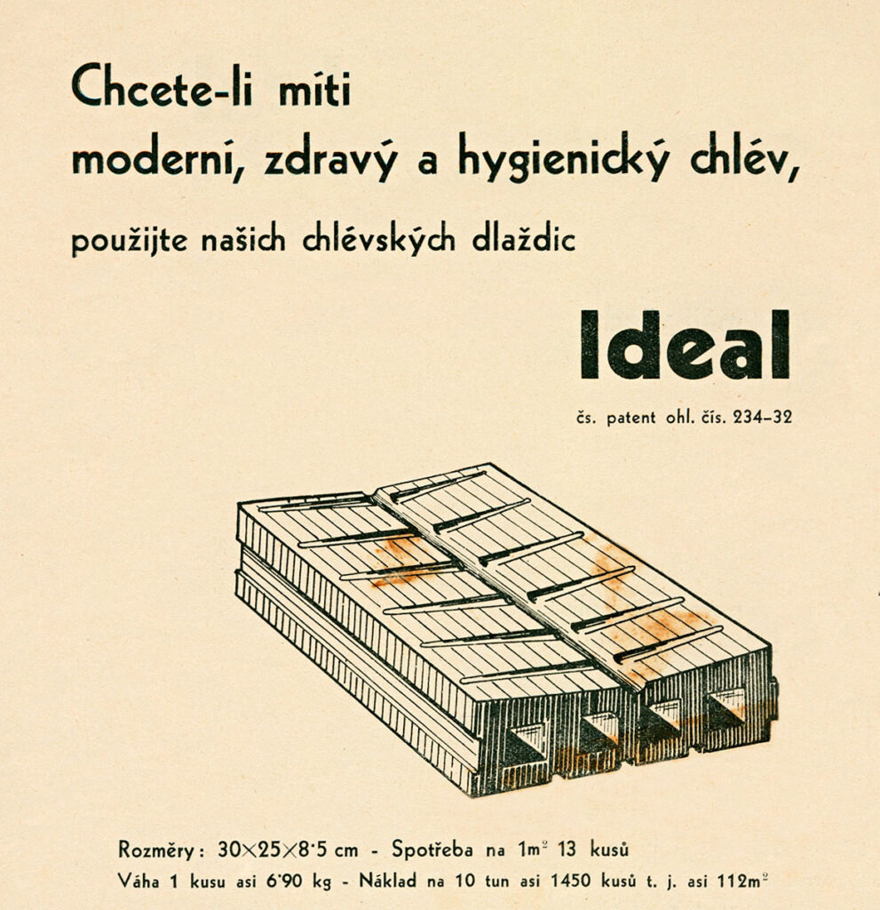 Dobový leták patentované stájové dlaždice Ideal Slovenských akciových cihelen v Hodoníně