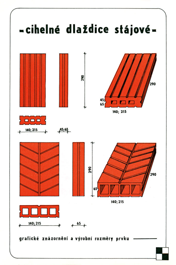 Dlaždice stájová pálená úzká z katalogu výrobků. Východočeské cihelny, n. p., Hrochův Týnec, rok 1967