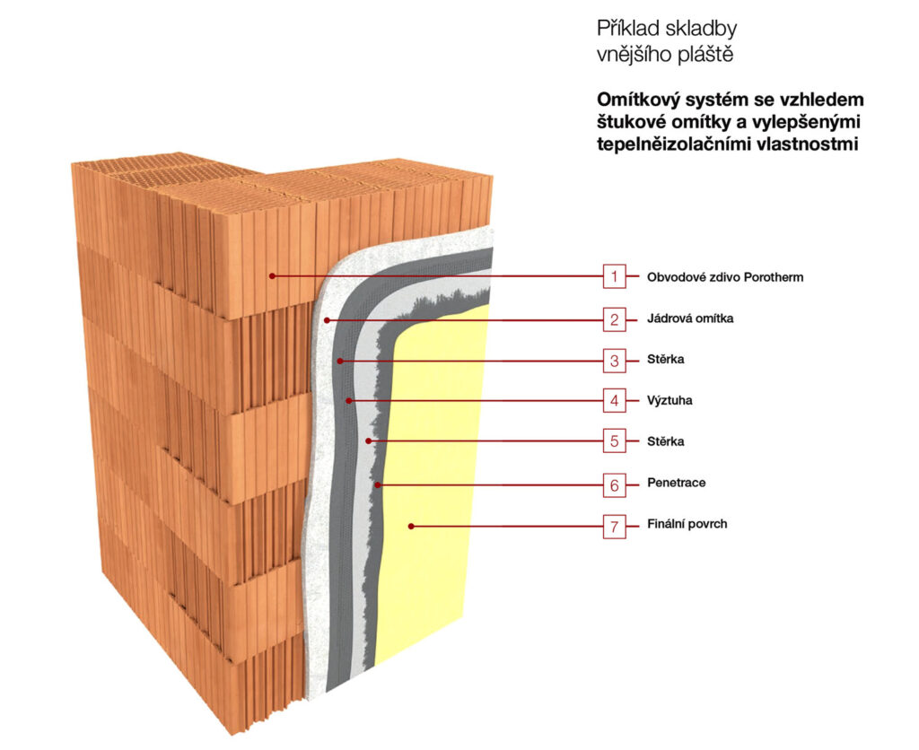 Cihelné zdivo Porotherm jako keramický povrch pod finální povrchy