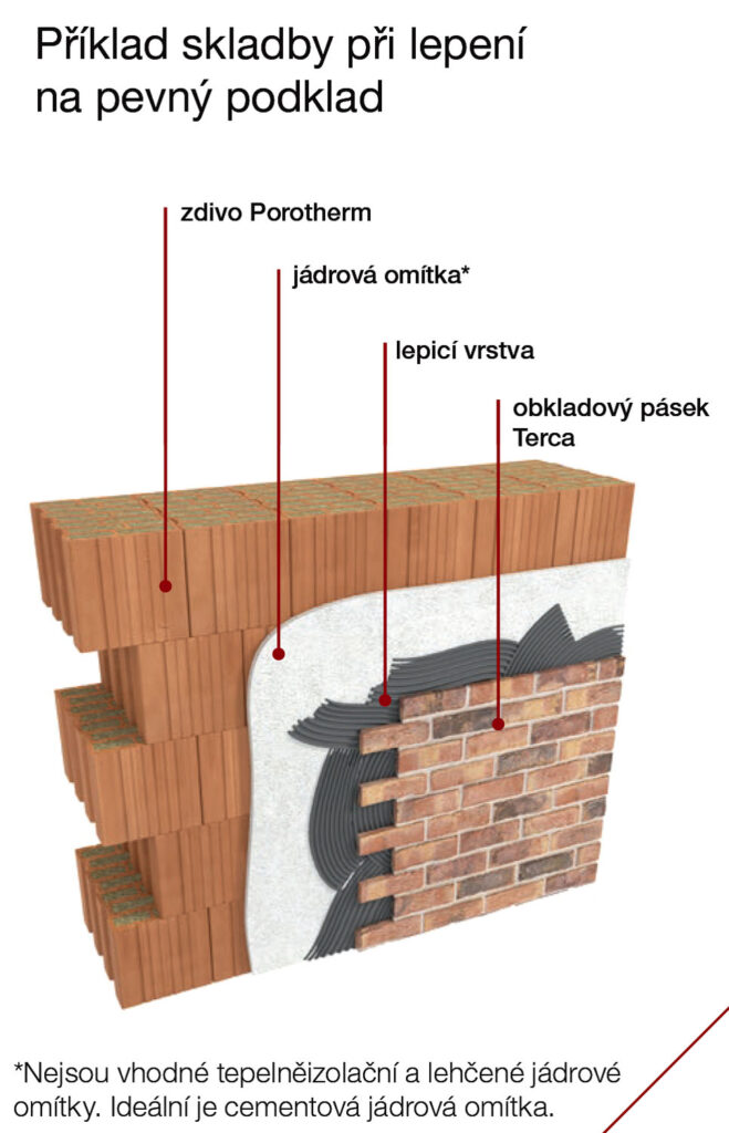 Doporučuje se aplikace jádrové omítky tloušťky minimálně 10 mm nebo celoplošné stěrky na cihelné zdivo jako podkladní vrstvy, aby se omezilo šíření tepla a vodní páry skrze spáry zdiva, snížilo radonové riziko a zlepšily akustické vlastnosti zdiva. Podklad musí splňovat odchylku rovinnosti do 20 mm/m dle ČSN 73 2901.
