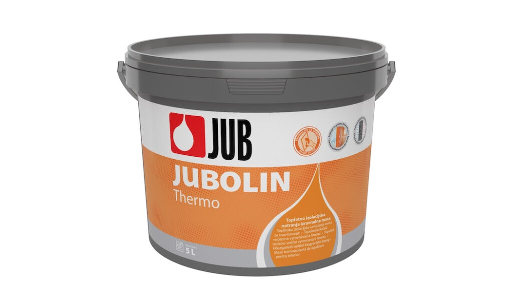 Pro zvýšený tepelný komfort je vhodné před malováním aplikovat ještě systémovou tepelně izolační vyrovnávací hmotu JUBOLIN Thermo. Ta se nanáší jako běžné stěrky špachtlí a hladítkem v celkové maximální tloušťce 3 mm. Její aplikace je sice trochu náročnější, ale každý šikovný kutil ji bez problémů zvládne. Dá se totiž brousit, takže případné nerovnosti vzniklé při aplikaci se dají dodatečně odstranit.