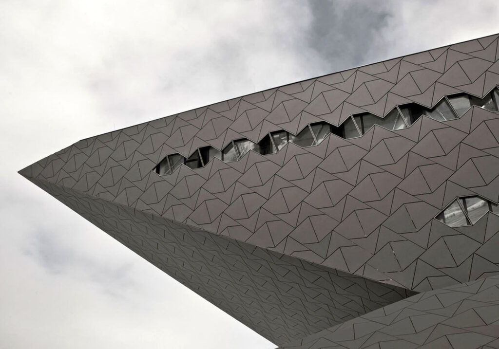 a prohlubní evokuje měsíční krajinu s krátery. Díky speciálnímu výrobnímu postupu si nejsou žádné dvě desky podobné a každá fasáda je tak naprosto jedinečná
