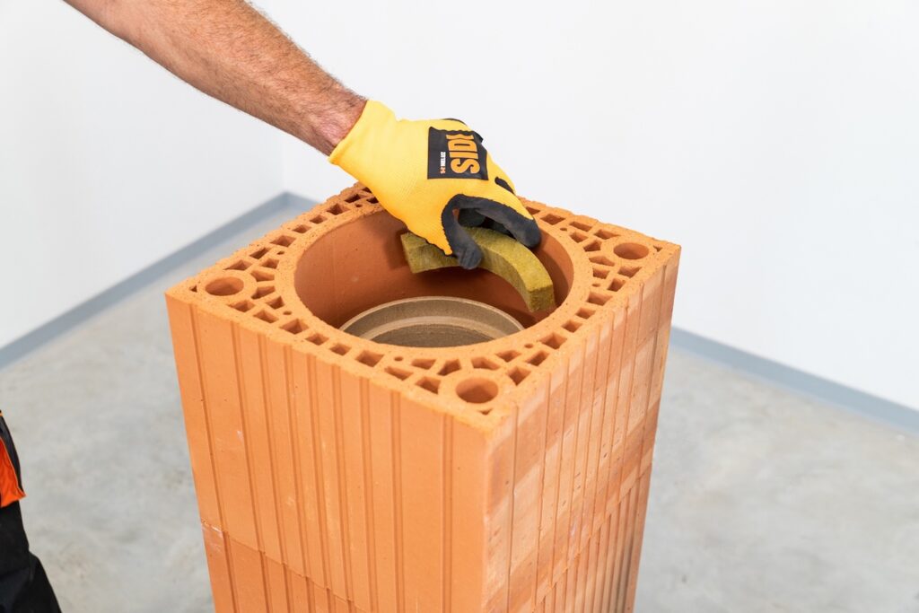Komínové těleso HELUZ SMART sestává z obvodového pláště z jednodílné broušené keramické tvárnice, do které se na stavbě vkládá izolovaná izostatická vložka. Ta je izolovaná již z výroby, což snižuje počet kroků při samotné montáži, která je tak výrazně rychlejší, jednodušší a bezpečnější. Ostatní komíny jsou obvykle dodávány jako tvárnice, vložky a samostatná izolace. Izolací pak buď musíte vložku na stavbě obalit, nebo ji vkládáte do tvárnice, což je samozřejmě pracnější a složitější postup. Tím, že vložky jsou dodáványjiž s tepelnou izolací, tak stavebník už jen skládá broušené tvárnice a do nich vkládá vložku. V rámci stavěných zděných komínů se jedná o nejpokrokovější a nejjednodušší systém. Komín je tvořen přesnými broušenými tvárnicemi, což u jiných komínových systémů není samozřejmostí. Broušené komínové tvárnice obvodového pláště tedy také přispívají k rychlé montáži.