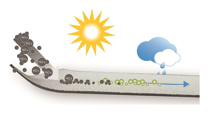 Tento unikátní hydroizolační pás je samostatně chráněn materiálem NOXITE (součást vrchního posypu), který obsahuje oxid titaničitý (TiO2), což je prvek s vlastnostmi autokatalýzy. Společně s UV zářením přeměňuje oxidy dusíku na vedlejší produkty, které jsou při dešťových srážkách splavovány ze střechy. Podle laboratorních měření není kvalita odtokové vody těmito vedlejšími produkty nikterak ovlivněna. Tento efekt odstraňující znečištění je trvalý, a to po celou dobu životnosti asfaltového pásu.