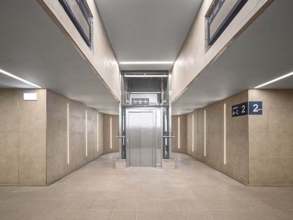 V tubusech převažuje tmavě béžová barva keramických obkladů, která je neutrálním základem pro antracitově šedé kovové sloupy zastřešení nakloněných chodníků i nerez doplňků, jako jsou zábradlí, vstupy do výtahu apod. Hladké plochy keramického obkladu doplňují LED pásky. Na nových radotínských podchodech se uplatnilo asi 1000 m2 velkoformátových keramických obkladů RAKO 120 x 60 cm ze série Betonico. Série byla zvolena v rámci výběrového řízení, kdy vzorky těchto dlaždic nejlépe odpovídaly požadovaným parametrům včetně industriálního vzhledu pohledového betonu. Více o materiálech RAKO na www.rako.cz.