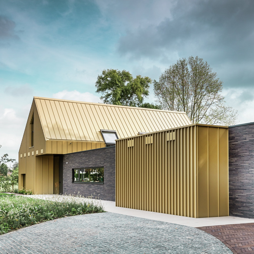 Zadání investora a architekta v jedné osobě znělo při plánování novostavby rodinného domu v nizozemském Elstu jasně: Střešní i fasádní materiál musí být maximálně odolný, s téměř neomezenou životností a minimem udržovacích a servisních zásahů. Rozsáhlou stavbu musí navíc opticky sjednotit a dodat jí dynamiku. Volba nakonec padla na hliníkové plechy PREFALZ a Falzonal, které budovu nejenom spolehlivě chrání, ale také jí dodávají punc elegance a jedinečnosti.