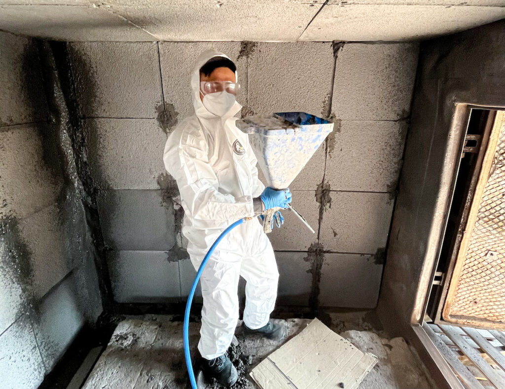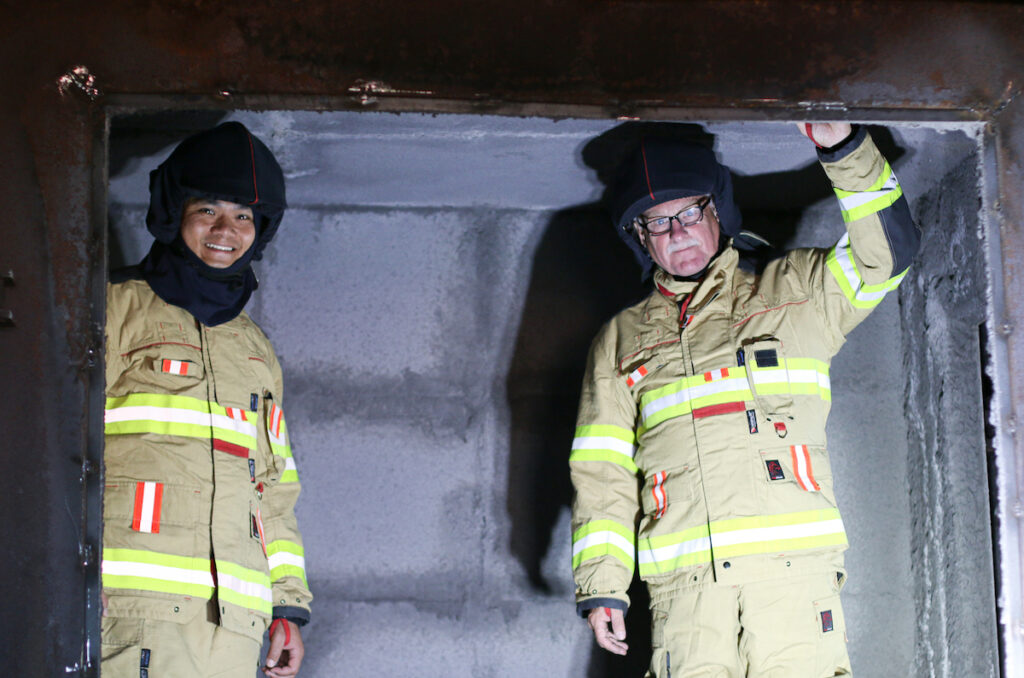 Patentovanou technologii žáruvzdorného nástřiku geopolymeru jsme testovali v laboratoři akreditované požární zkušebny společnosti Pavus.