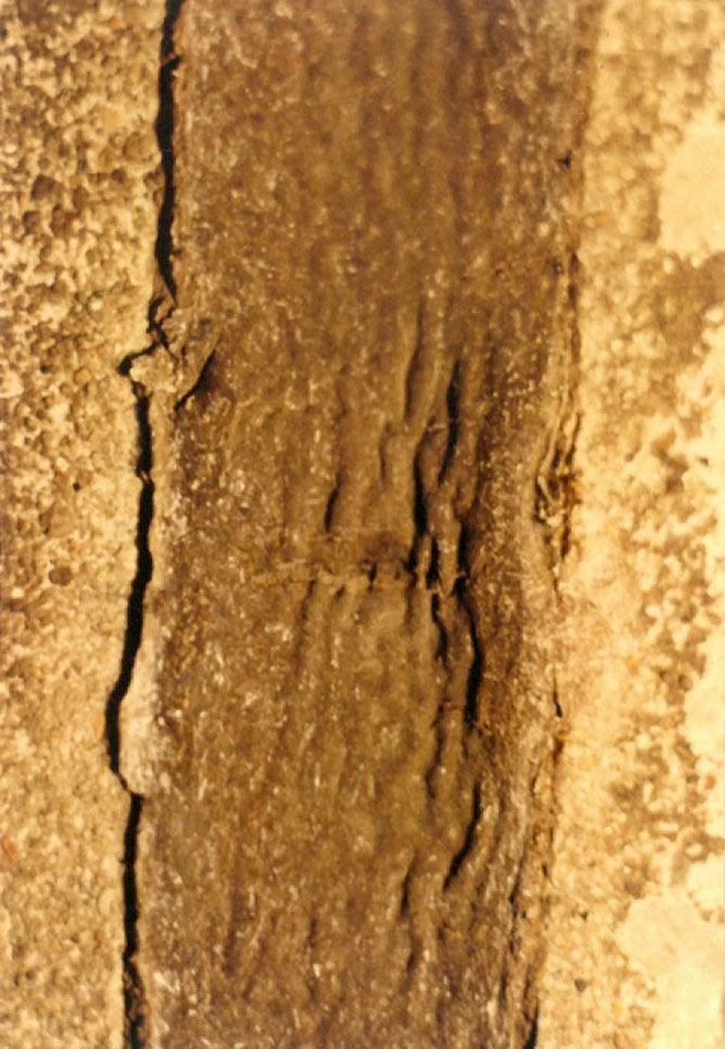 ●  pevné propojení navazujících panelů vysprávkovou hmotou, což mělo za následek vznik trhlin mezi vysprávkou a vlastním prvkem, neboť vysprávka nedokáže bez porušení soudržnosti s podkladem přenášet objemové změny prvků vznikající v důsledku kolísání teploty vnějšího prostředí. V daném případě se jednalo o velmi závažnou závadu, neboť srážková voda se dostala vlivem kapilárních sil za vlastní těsnění spáry, nemohla ze spáry vytéci na vnější fasádní líc, ve spáře se hromadila a způsobila jednak snížení tepelně-technických vlastností konstrukce a zatékala i do vlastního interiéru stavby,
