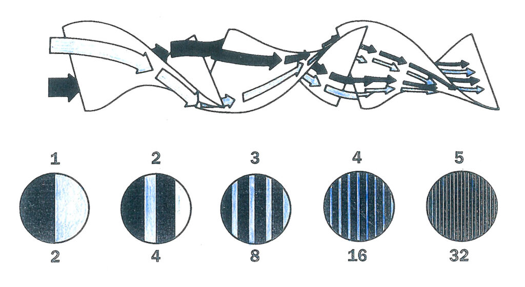 Obr. 9: Princip mísení hmot ve statickém mixéru