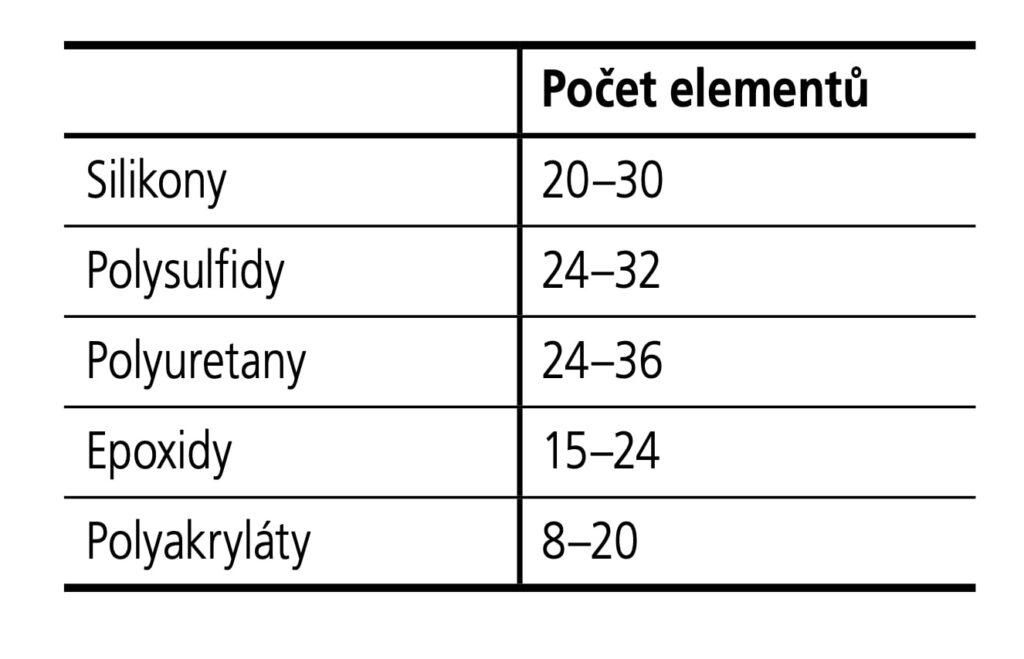 Tabulka 3: Přehled vybraných tmelů do dilatačních spár na evropském trhu