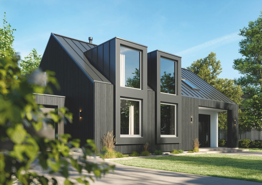 Metalické fólie a hranaté zasklívací lišty přispívají k hliníkovému vzhledu