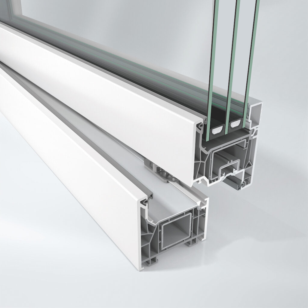 Užší stavební hloubka rámu oproti křídlu je zásadní rozdíl ve srovnání s předchozími systémy, jako je Schüco LivIng nebo CT 70, které mají stavební hloubku shodnou. Rám systému Schüco FocusIngmá stavební hloubku 70 mm, ale křídlo bylo modifikované tak, aby bylo širší o 6 mm, což má své výhody – je to systém vhodný nejen pro novostavby, ale zejména pro rekonstrukce, kdy se obvykle nahrazují starší okna s užší stavební hloubkou. Druhým benefitem je možnost šířky zasklení až 52 mm, takže křídlo dosahuje vynikajících tepelně izolačních vlastností. K tomu přispívají i pěti nebo šestikomorové profily, které vynikají optimalizovanou vnitřní komorou a geometrií drážky. Díky vynikajícím hodnotám Uf lze při použití trojskla s hodnotou Ug 0,5 W(m2K) (1,23 x 1,48 metru) snadno dosáhnout hodnot Uw 0,80 nebo ještě lepších.