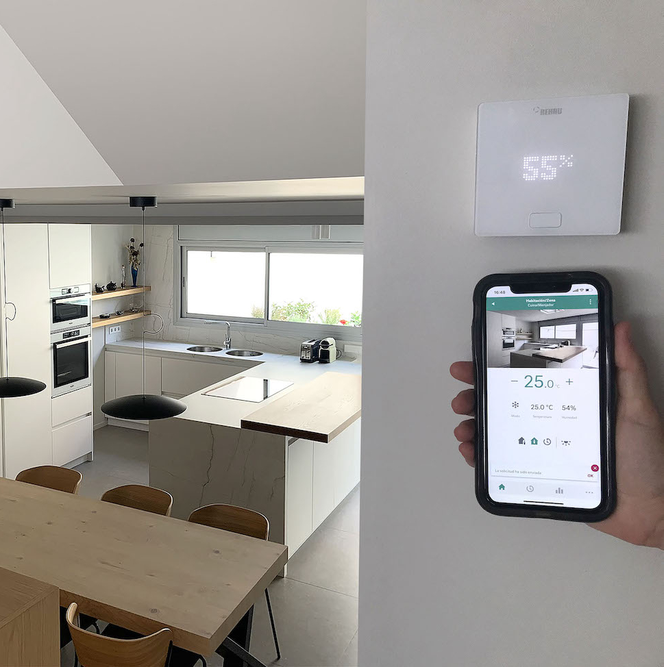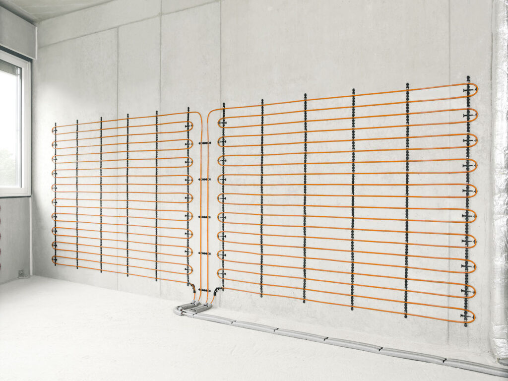 Topné médium protéká potrubím RAUTHERM S, které je vyráběno z high-tech materiálu PE-Xa, a které je díky svým vlastnostem a odolností zárukou dlouhé životnosti a bezproblémového provozu. Potrubí je mechanicky fixováno ke stěně a zakryto obvykle omítkou, ať již sádrovou nebo vápenocementovou. Důležité je správné provedení omítky. REHAU nabízí i suchou cestu, například pro potřeby rekonstrukcí starších objektů. V těchto případech je potrubí zakryto sádrokartonovou předstěnou, nejlépe se sádrokartonovými deskami s příměsí uhlíku, který vylepšuje parametry tepelné vodivosti. Suchá cesta má navíc výhodu rychlé instalace. Pokud bychom chtěli dosáhnout ještě lepšího rozložení teplot v místnosti, pak je možné kombinovat stěnové vytápění s podlahovým. REHAU doporučuje k efektivnímu provozu inteligentní regulaci v podobě termostatu NEA SMART 2.0.