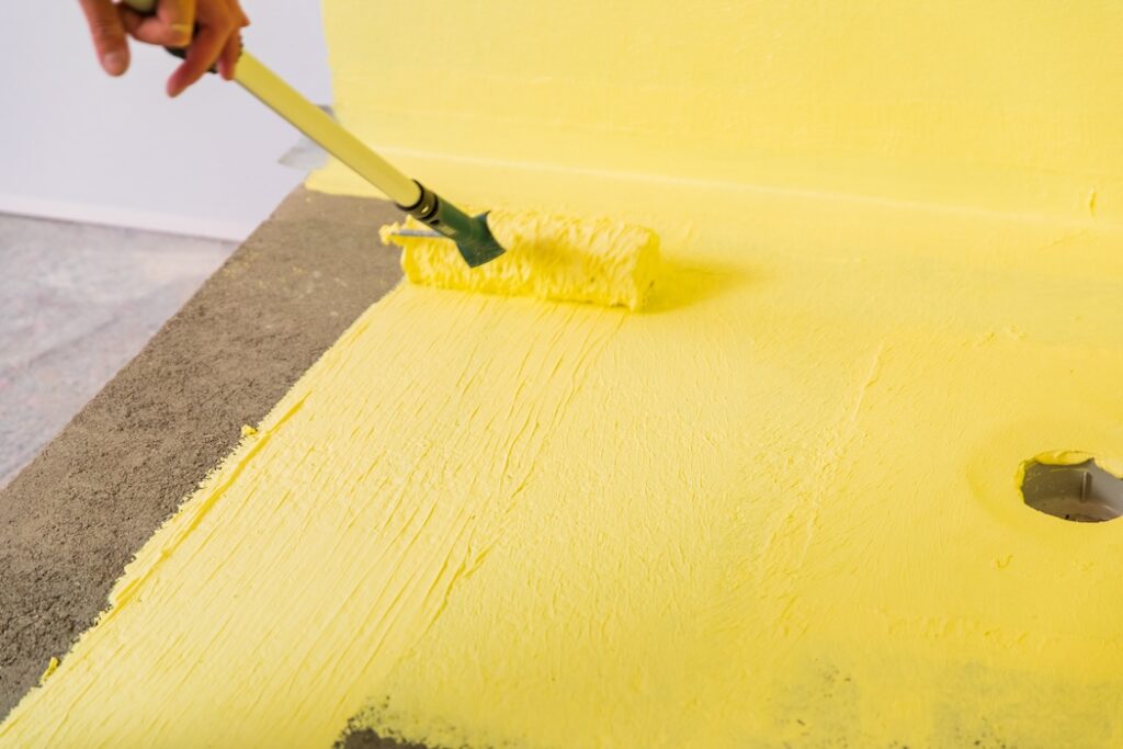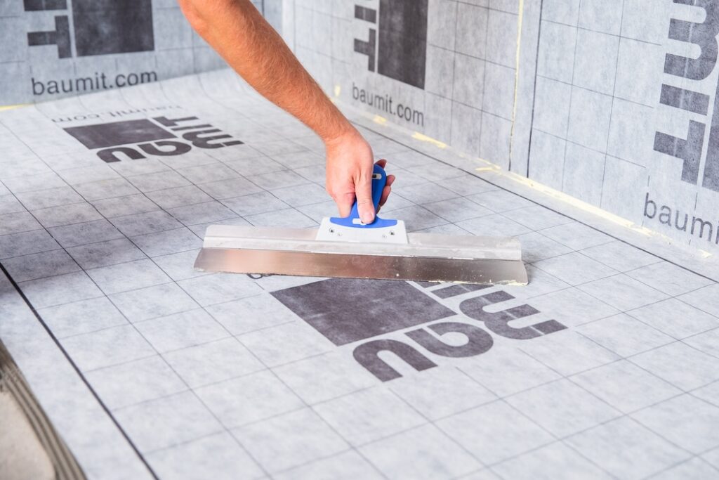 Vtlačení hydroizolační folie Baumit AquaSafe do lepicí malty Baumit Baumacol FlexTop Speed a hydroizolační folie Baumit AquaSafe – finální pohled