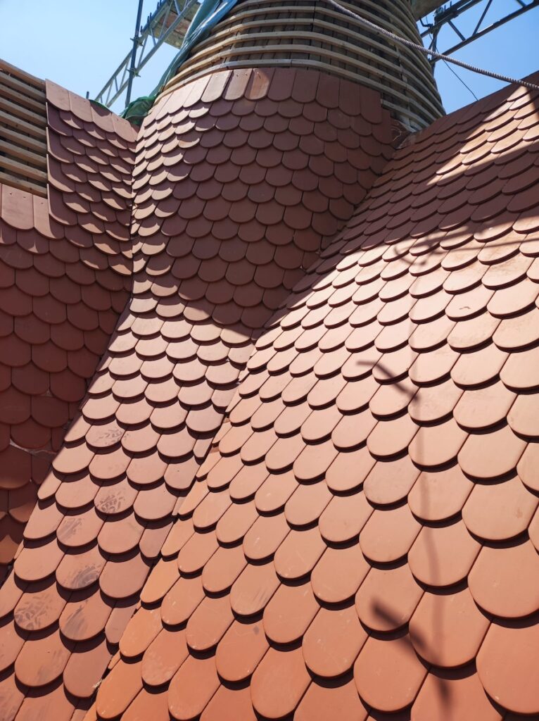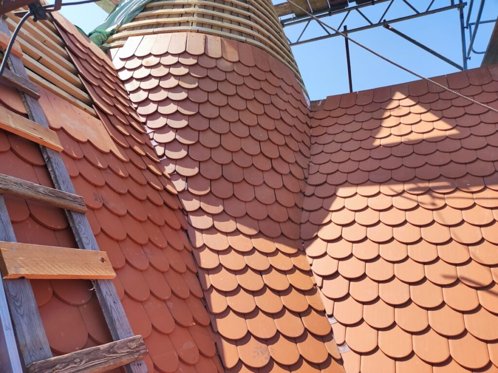 Životnost bobrovek se pohybuje až do sta let, záleží na kvalitě keramického střepu. Proto památkáři ve spolupráci se zástupci investora nepodcenili výběr konkrétního dodavatele keramických tašek a porovnávali si několik vzorků. Vítězem tohoto výběru se stal model Opál z portfolia značky Bramac. Tato keramická taška se vyrábí v sousedním Německu, kde se těží jedny z nejlepších jílovitých hlín v Evropě. Díky kvalitnímu materiálu, německé technologii výroby a preciznímu procesu vypalování jsou tašky Opál velmi odolné, s nízkou nasákavostí a vysokou pevností. Dá se to poznat snadno: mají rovnoměrně probarvený keramický střep bez začernalých stop a při poklepu hezky „zvoní“.