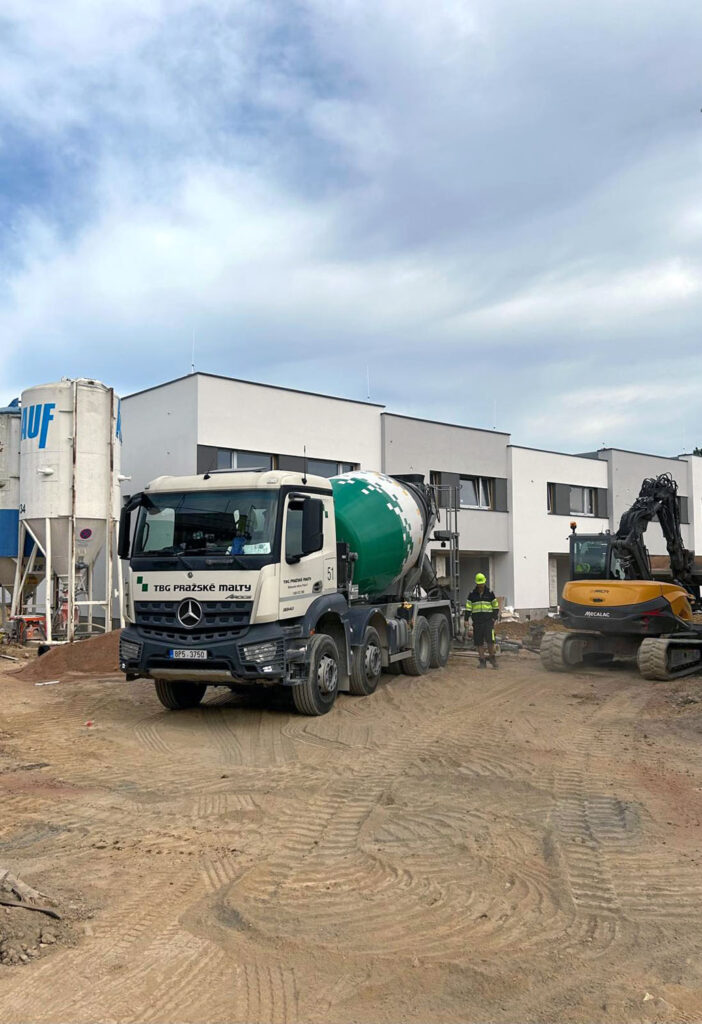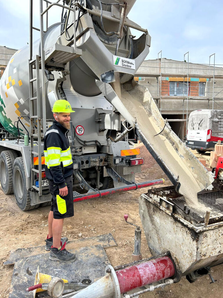 ANHYMENT® se na stavbu přepravuje autodomíchávačem / Dávkování do šnekového čerpadla