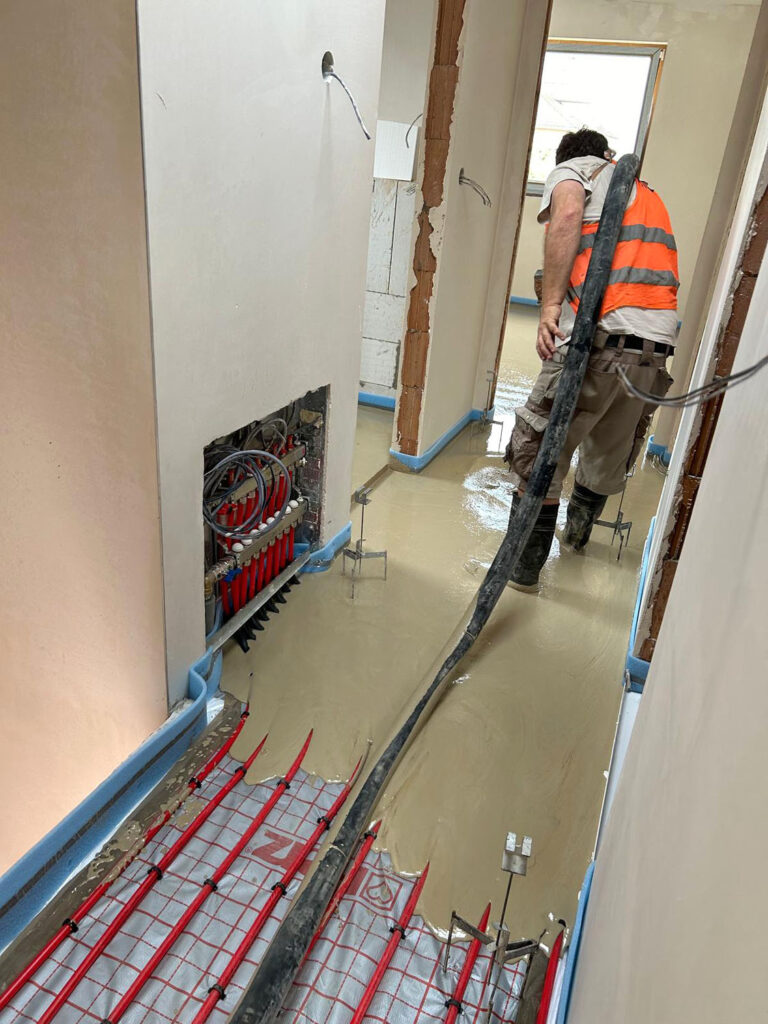 Zalévání podlahového topení / Ukládka materiálu