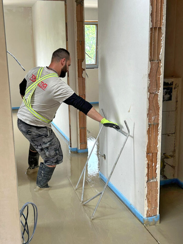 Příprava před litím potěru na bázi síranu vápenatého