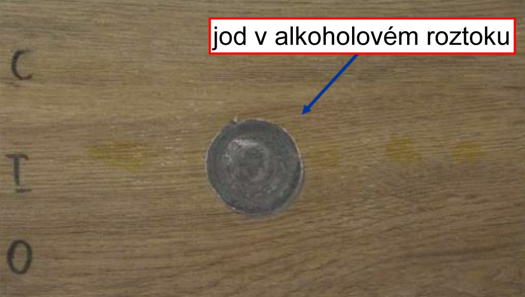 – jod v alkoholovém roztoku (13 g/l) (ISO 10545-14);
