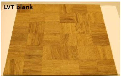 – 3 vzorky pružných podlahovin na bázi plastů (materiály na bázi plastů – PVC), jako jsou LVT (použití: měkké, střední zátěžové);