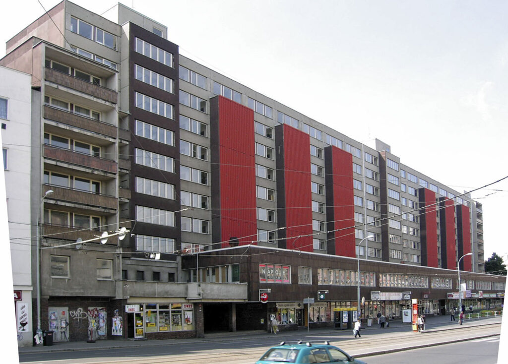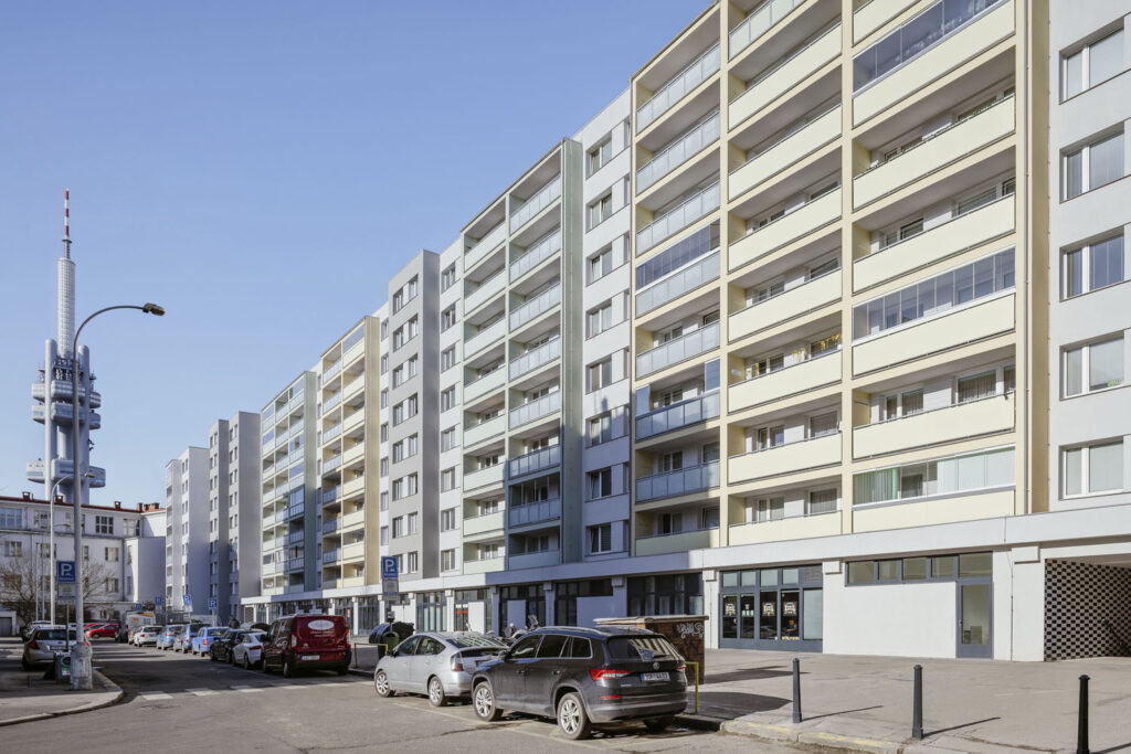 Žižkov se v 19. století stavěl na severních svazích za Prahou, kdysi tu byly usedlosti v zahradách a sadech. Měl svoje kouzlo, ale činžovní domy skromné úrovně se staly vhodnou záminkou pro asanaci. Komunistický režim ji pojal svérázně, starou zástavbu nahradily paneláky. Podobný příběh by mohla vyprávět další města nebo čtvrtě, málokde však byly paneláky tak nevzhledné svojí monumentalitou. Dlouhá stavba při Táboritské ulici měla skutečně svérázné proporce, navíc se do veřejného prostoru obracela fasádou, kterou členily schodišťové věže a sklípkové rizality s obkladem z rudých plechových lamel. Cílem rekonstrukce proto byla její integrace do současného obrazu Žižkova. Řada panelových domů už tu byla obnovena, takže dnes tato čtvrť působí daleko přívětivěji než před lety.