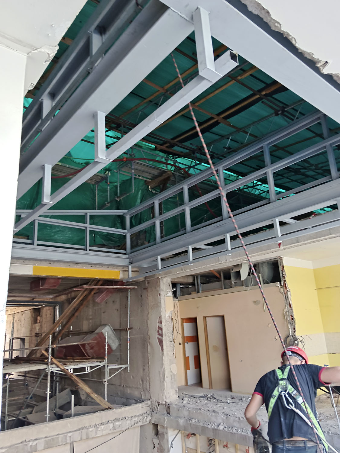 - Opravy povrchů konstrukcí s lokální výměnou oslabené výztuže, případně s jiným statickým zesílením (10 % plochy)