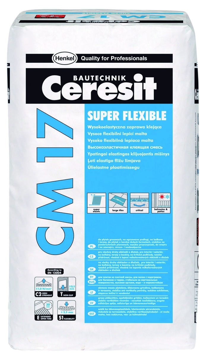 U kritických podkladů doporučují techničtí poradci Henkel sáhnout po flexibilní maltě Ceresit CM 16 – FLEX, touto maltou lze lepit dlažby na balkónech a terasách, ale je možné ji použít i při lepení na montážní desky. Flexibilní spojení obkladu s podkladem umožňuje i tenkovrstvá vysoce flexibilní lepicí malta Ceresit CM 17 Superflex, která se hodí pro lepení obkladů a dlažby na stabilních a kritických podkladech, i jako jsou například montované příčky, dřevotřískové a OSB desky, podlahy s podlahovým vytápěním, schodiště, bazény a nádrže na vodu. V nabídce je tato malta i v bezprašném provedení Ceresit CM 17 Stop Dust. Lepicí malty Ceresit CM 16 a CM 17 patří do třídy C2 a navíc splňují požadavky na příčnou deformaci třídy S1.