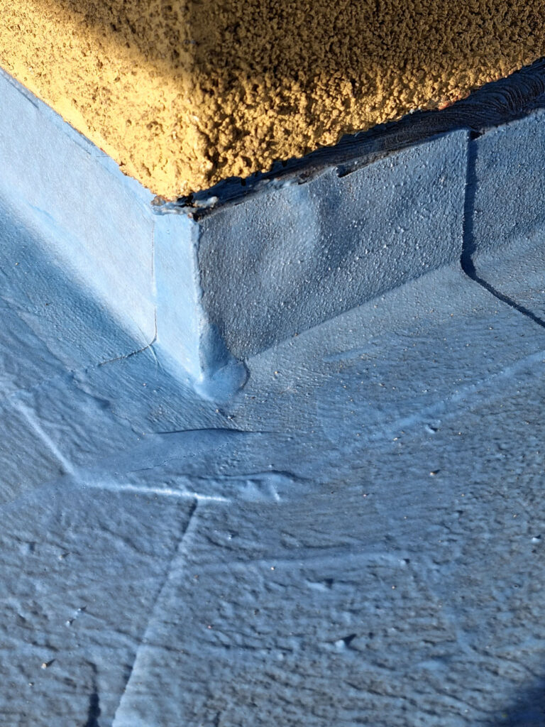 Rohy se izolují pomocí těsnicího pásu nebo těsnicích rohů. Hydroizolační vrstva musí být provedena tak, aby vytvořila těsný a souvislý ochranný obal, který pokračuje i vertikálně na stěnu