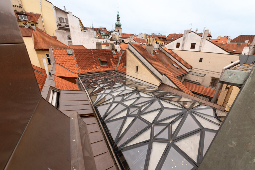 V gotických domech Starého Města se dvory tradičně nezasklívají. Památková ochrana je zde přísná a jakýkoli zásah musí být nejen technicky dokonalý, ale také esteticky přesvědčivý. Projekt RED FOX tuto výzvu přijal – a posunul ji ještě dál. Cílem nebylo dvůr pouze zakrýt, ale vytvořit nový, plnohodnotný prostor, který bude přirozeně navazovat na historickou architekturu a zároveň nabídne světlo, komfort a bezpečí pro návštěvníky restaurace.