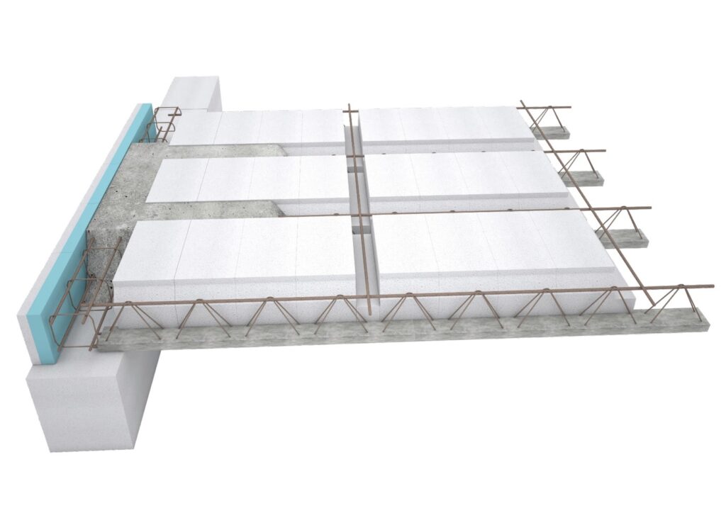Hlavní výhoda je v realizaci. Není třeba celoplošné bednění, stačí podepření v rozpětích po 1,6 metru. Není třeba složité vázání výztuže. Množství betonu je podstatně menší.