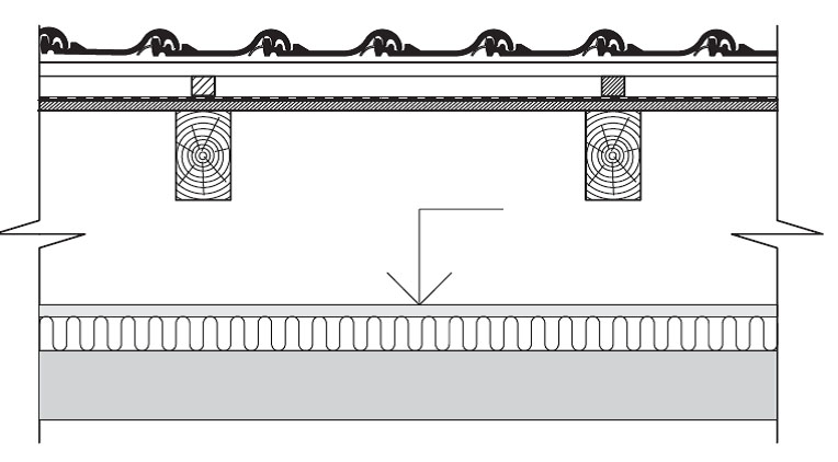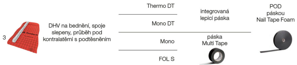 Těsné podstřeší je řešeno bedněním a fólií vhodnou na bednění, bez přelepovaných přesahů (PHI 2. stupně, třída A), eventuálně s přesahy slepovanými dle počtu zvýšených požadavků např. v klimaticky náročných podmínkách.