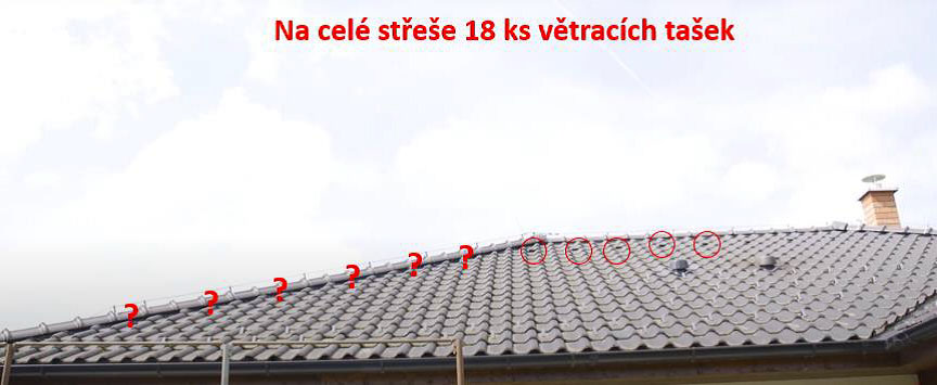 Na střeše je ale pouze 18 ks větracích tašek – tedy pouze cca 40 % minima.