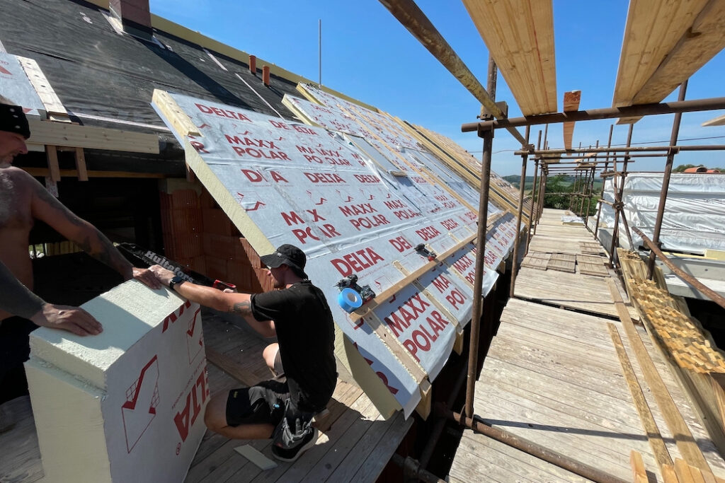 Při zateplení nad krokvemi a mezi krokvemi může zůstat při rekonstrukci původní vnitřní obklad a nedochází tak ke ztrátě obytného prostoru.