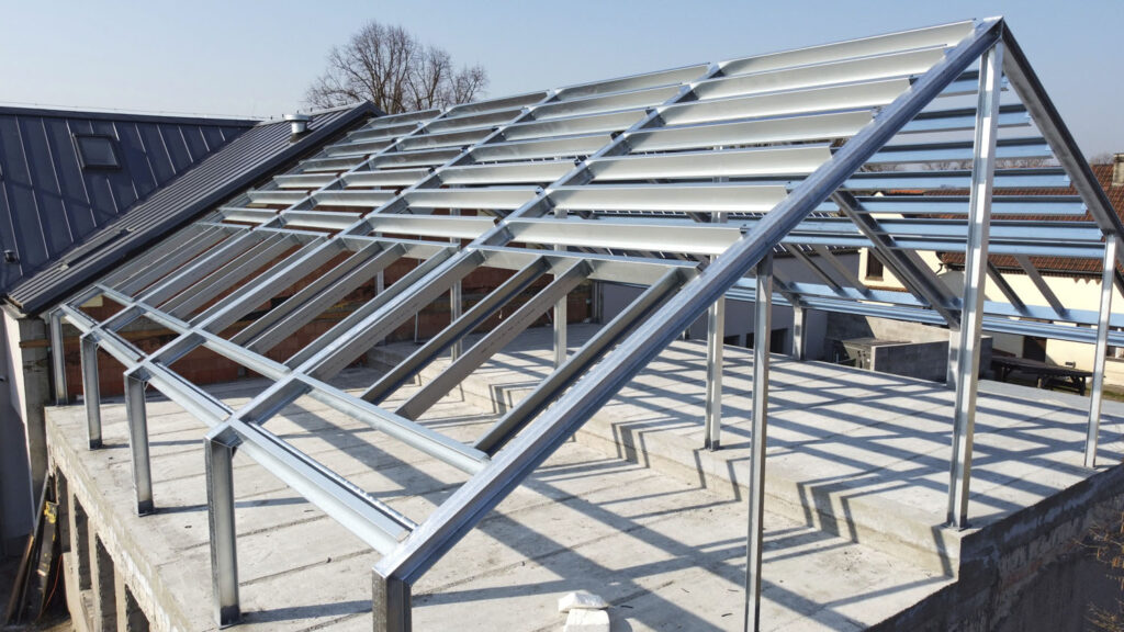 Nástavba je konstrukčně tvořena sestavou válcovaných dvoukloubových ocelových rámů sedlového tvaru s pomocnými středními sloupy v místech hřebenů vikýřů, které jsou doplněny tenkostěnnými vaznicemi Lindab Construline Z 200, vytvářejícími podporu vlastní skladbě šikmé střechy. Ta je tvořena nad vaznicemi OSB deskami, nadkrokevní izolací, provětrávaným roštem s druhou vrstvou podkladních OSB desek a vlastní krytinou Lindab SRP Click ve variantě povrchové vrstvy Elite s třicetiletou zárukou. Krytina je doplněna odvodněním Lindab Rainline, vše v barvě RAL 9007 šedá metalíza.